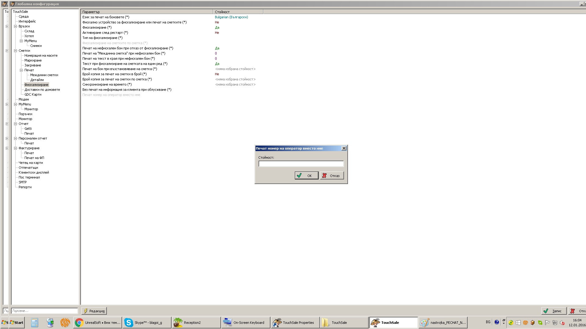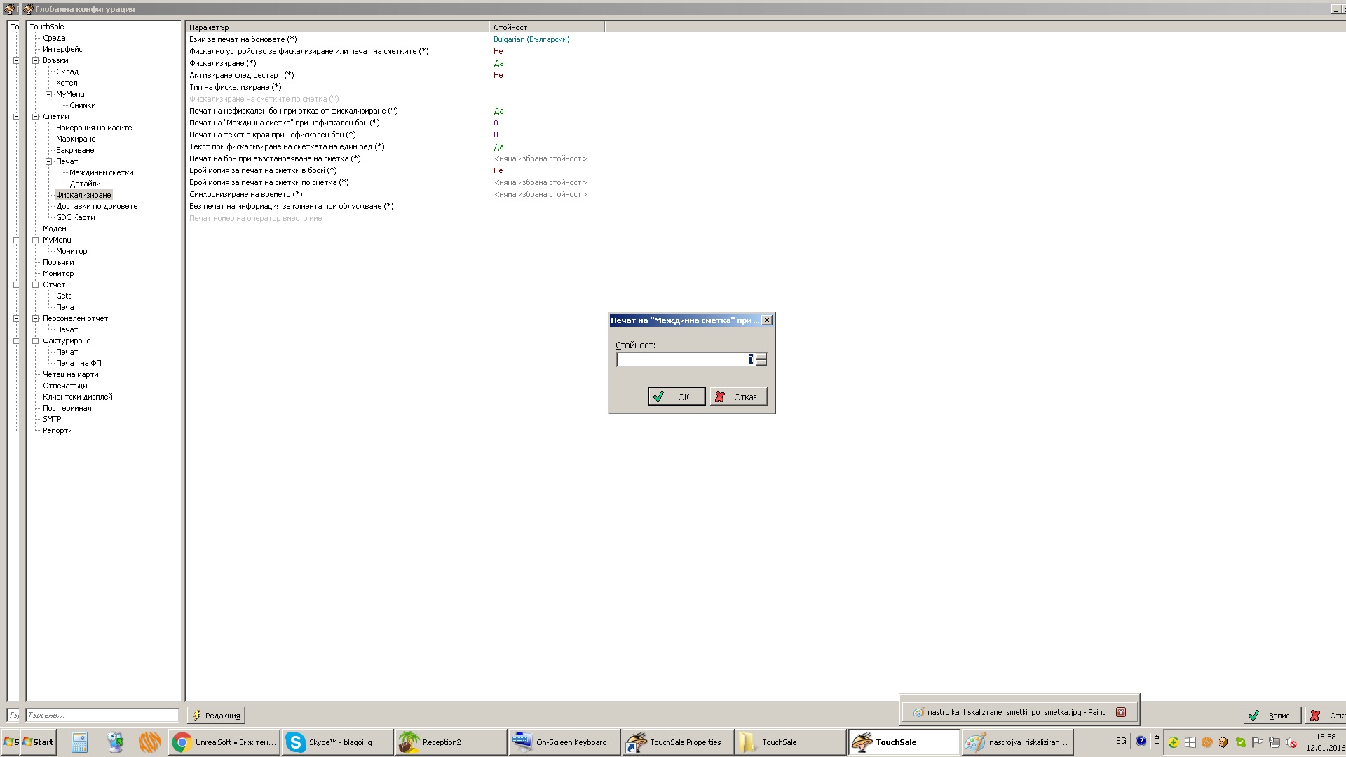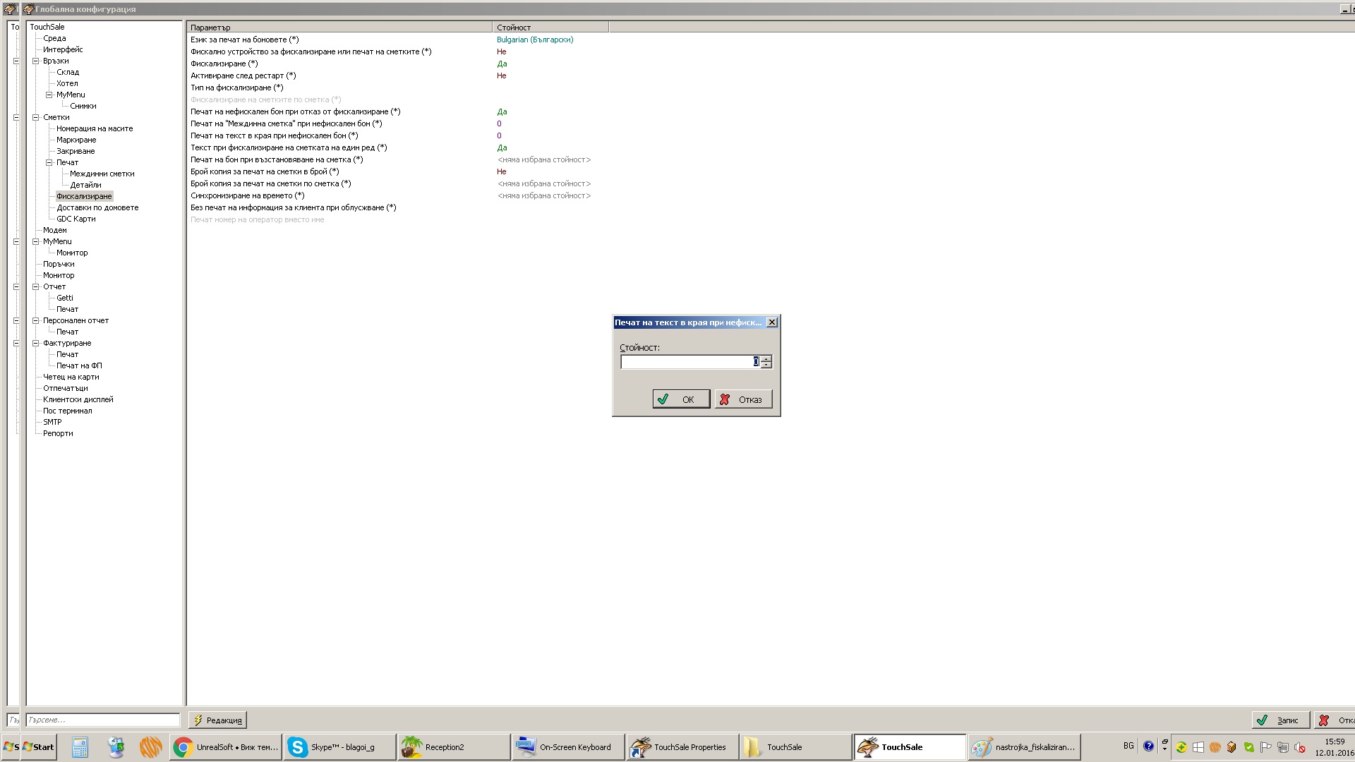В глобална конфигурация в секция фискализиране са разместени диалоговите прозорци за различните настройки, съответно не може да бъдат зададени коректни стойности. Версия 1.8.224.478