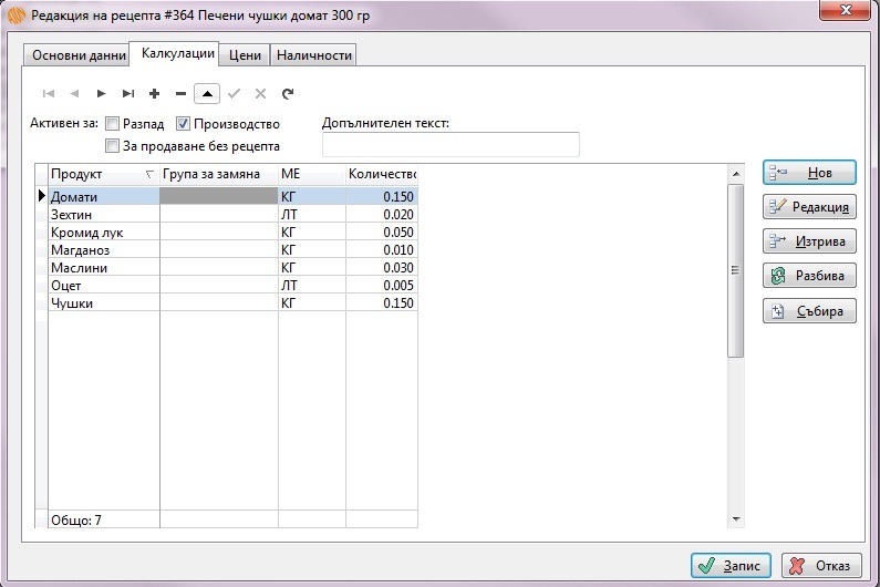 П.С: затова ще е добре да има в история на операциите "корекция рецепта" и продукт.