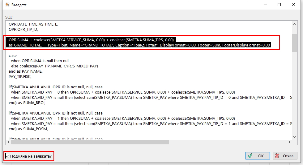 as GRAND_TOTAL, -- Type=Float, Name="GRAND_TOTAL", Caption="Гранд Тотал", DisplayFormat=0.00, Footer=Sum, FooterDisplayFormat=0.00